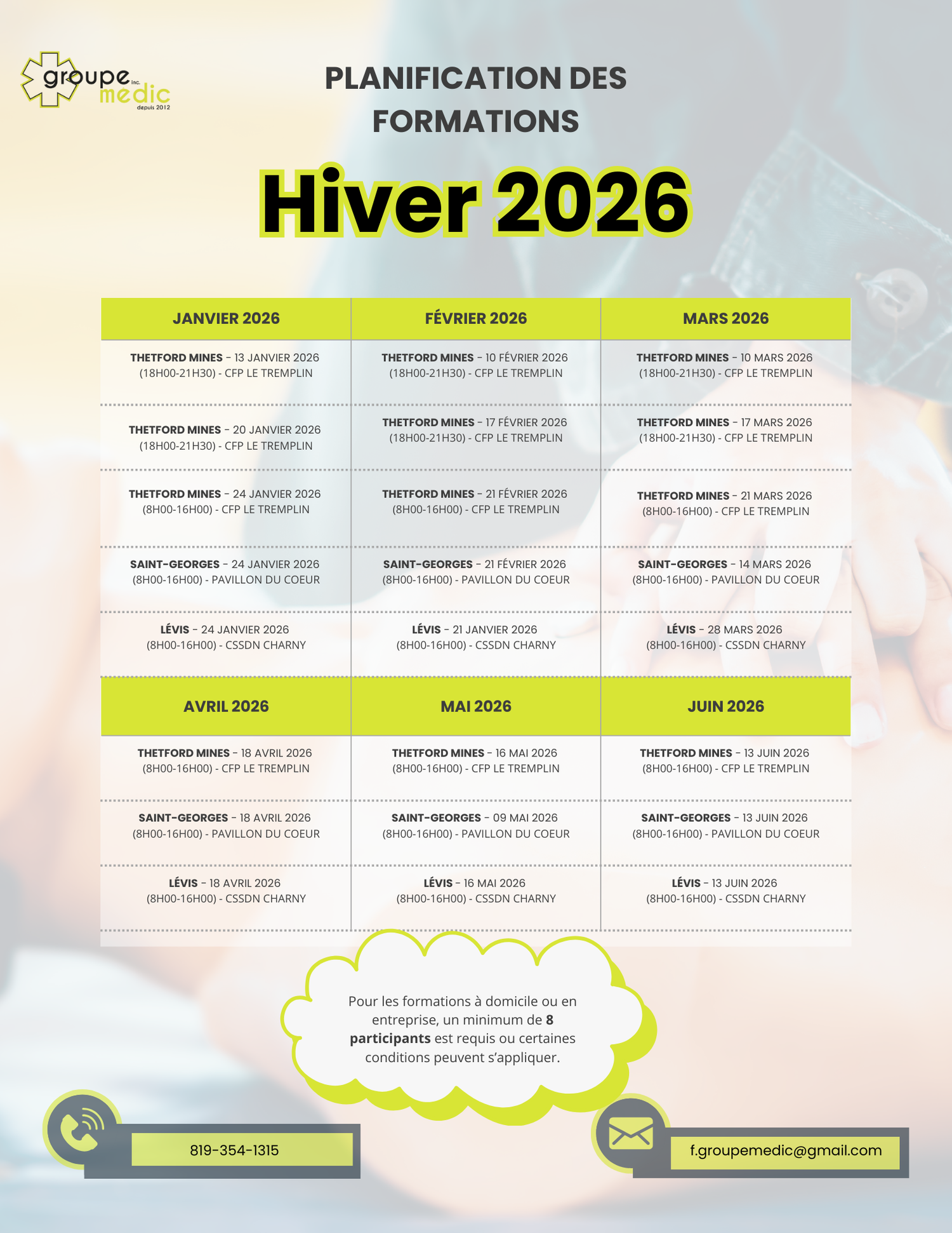 ✔️ Formations mensuelles dans nos trois secteurs (Fin de semaine et en soirée)