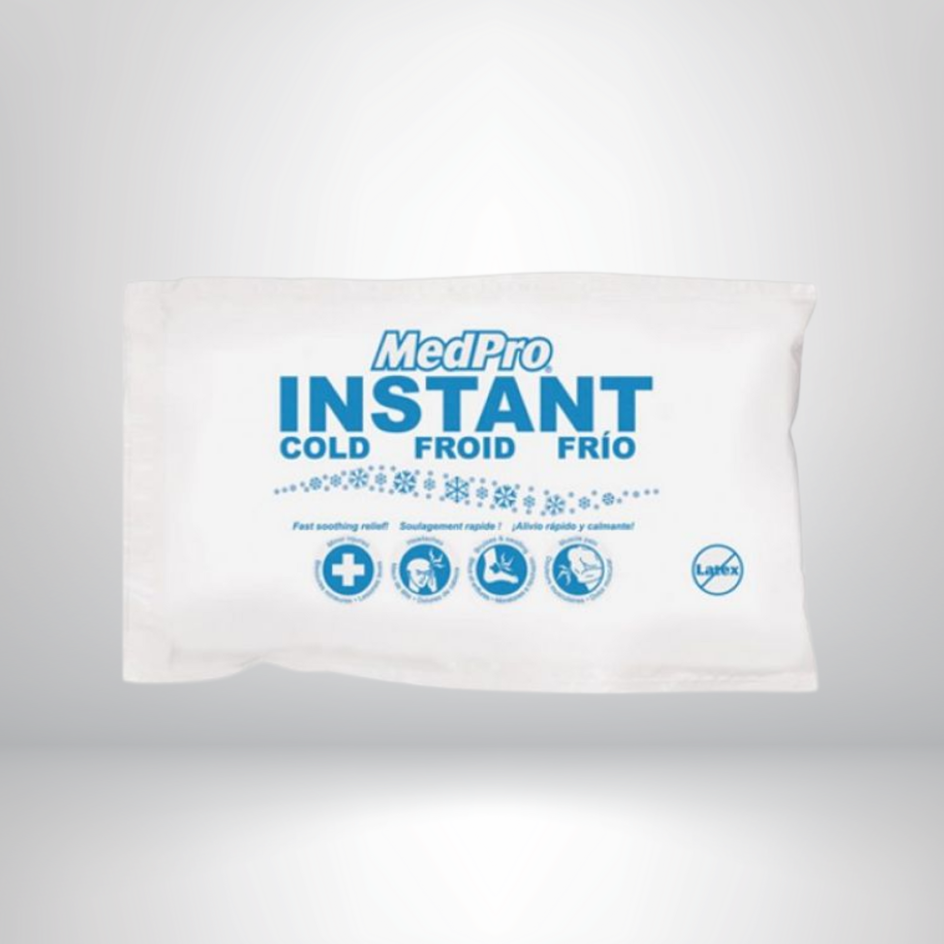 • Compresse froide jetable fabriquée à partir d’un composé chimique scellé dans une poche en plastique doublée et isolée
